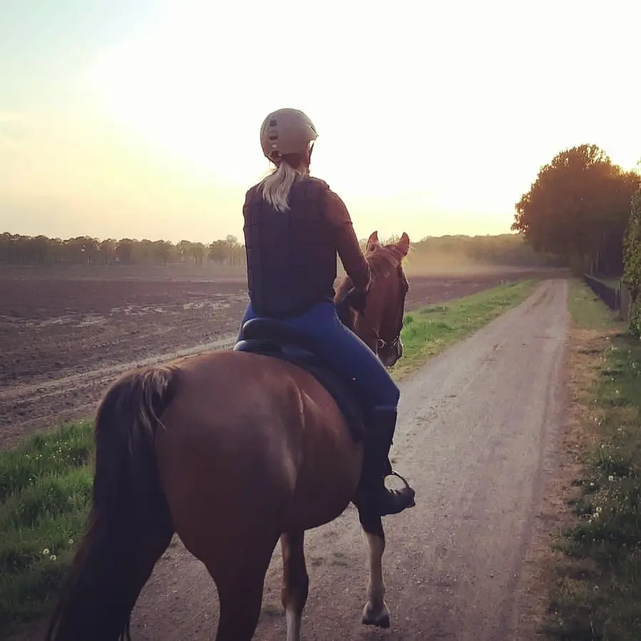 Ik wissel grondwerk/longeren/werken aan de hand af met buiten wandelen, clickertraining, ‘zadelmak’ maken, stress release oefeningen (o.a. TRT), spelletjes/vrijheidsdressuur en speurwerk en ESDR.